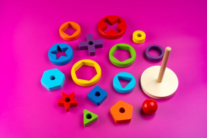 Take one of the parts of the pyramid, show it to the child, noting the color. Ask the child to find the other parts of the same color. It will develop color recognition and grouping skills. Then you can count how many parts of that color the pyramid has. It will contribute to the development of simple arithmetic skills. Arrange the parts of the pyramid irregularly on the table and ask the child to group them according to the shape. It will contribute to the development of attention and thinking.