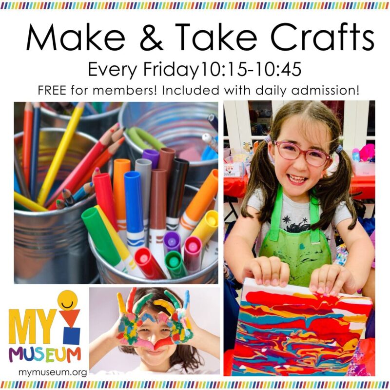Art making plays a central role in cognitive, motor, language and social-emotional development. Every Friday, MY Museum will host a craft expert to guide kids and caregivers in a fun, hands-on project. Families will enjoy creative exploration and make something fun to take home, too. Leave the mess to us and be prepared to let your creativity go crazy!